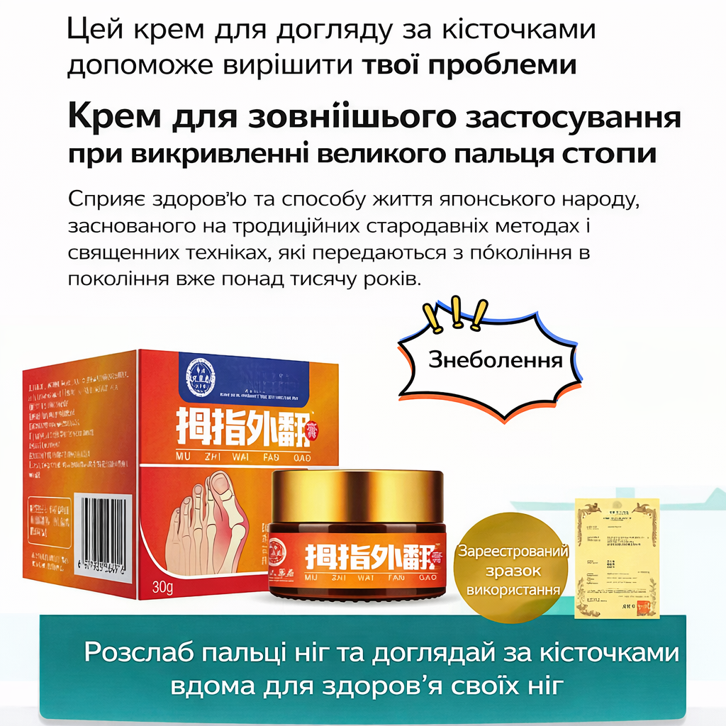 Нанесіть невелику кількість крему на зону біля великого пальця (там, де відчуваєте дискомфорт).